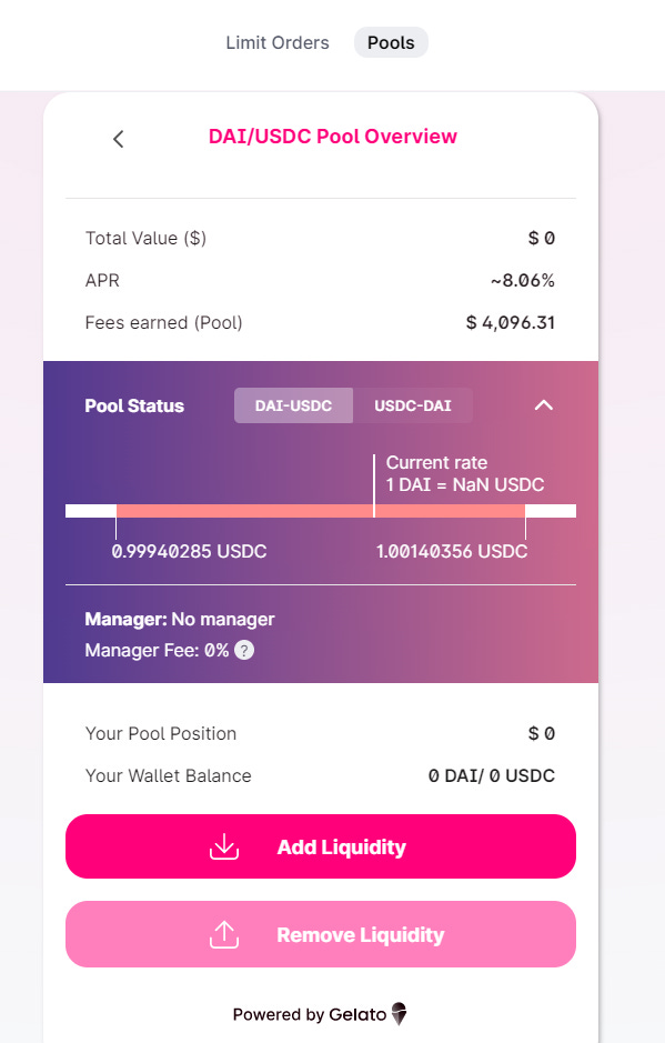 There are hosted services out there to explore should you not have the time to pay attention to your Uniswap V3 liquidity pools often. If you’re comfortable you can research these options and decide if they are right for you. Think of these as “pool managers”. At Crypcadia we have experience and use of Visor and Gelato, both of which we feel positive about. Visor displays expected APYs and makes managing LP positions a breeze.